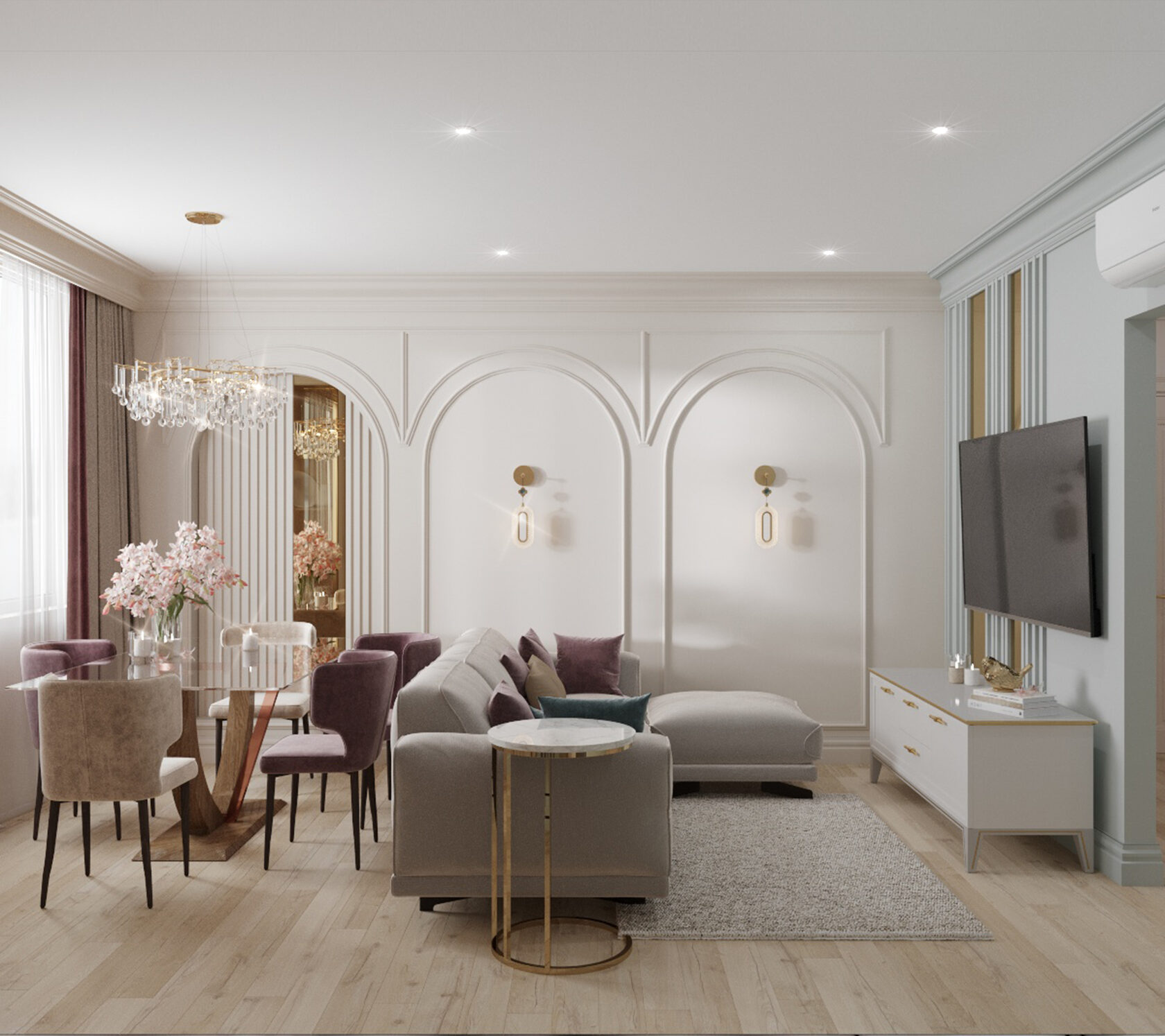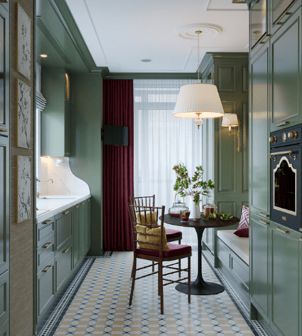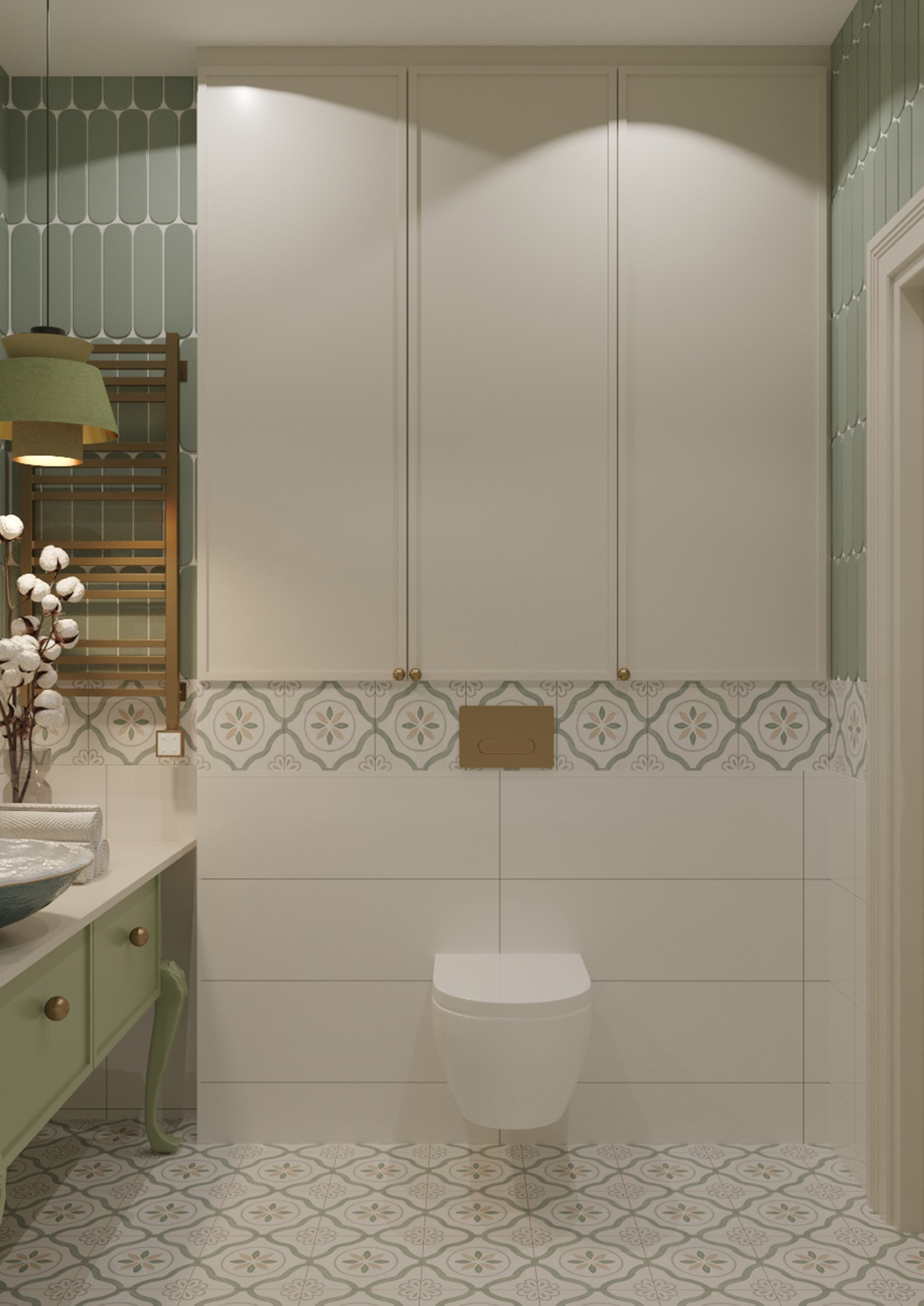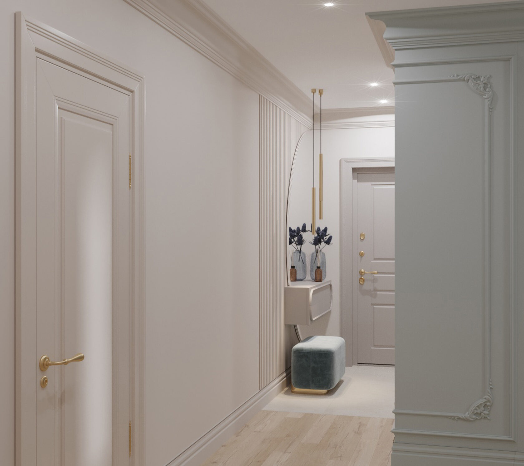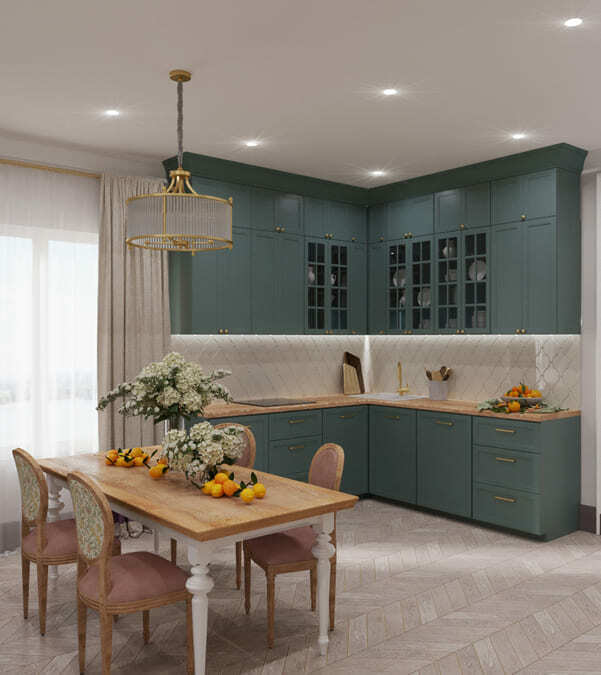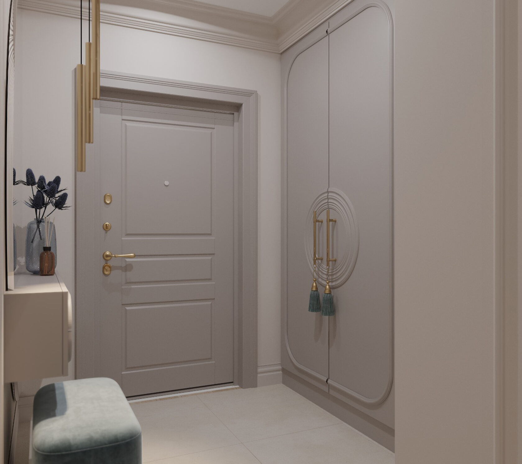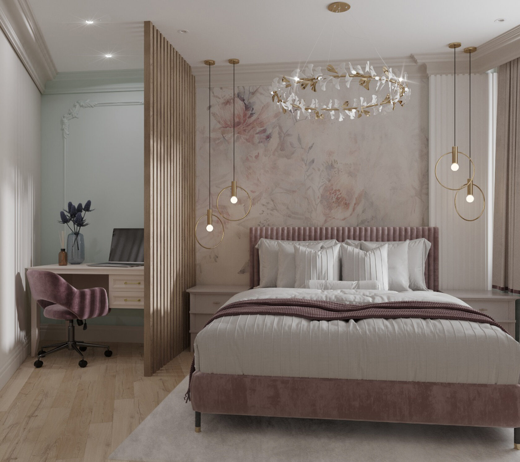 Также, мы использовали любимые цвета будущих хозяев: розовый для хозяйки, и зеленый для хозяина. В пастельных тонах эти цвета отлично сочетаются и не надоедают. В сочетании с теплыми бежевыми оттенками, квартира остается очень уютной.